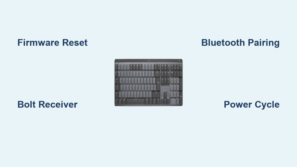 Your Logitech MX Mechanical keyboard suddenly stops responding mid-deadline. The “Easy Switch 1” LED blinks frustratingly slow while you’re locked