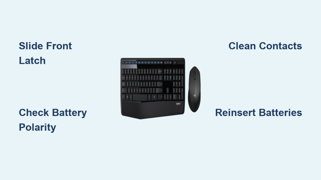 Your Logitech K345 keyboard suddenly dies mid-email? Don’t panic—this is almost always a simple battery issue. With its tool-free compartment