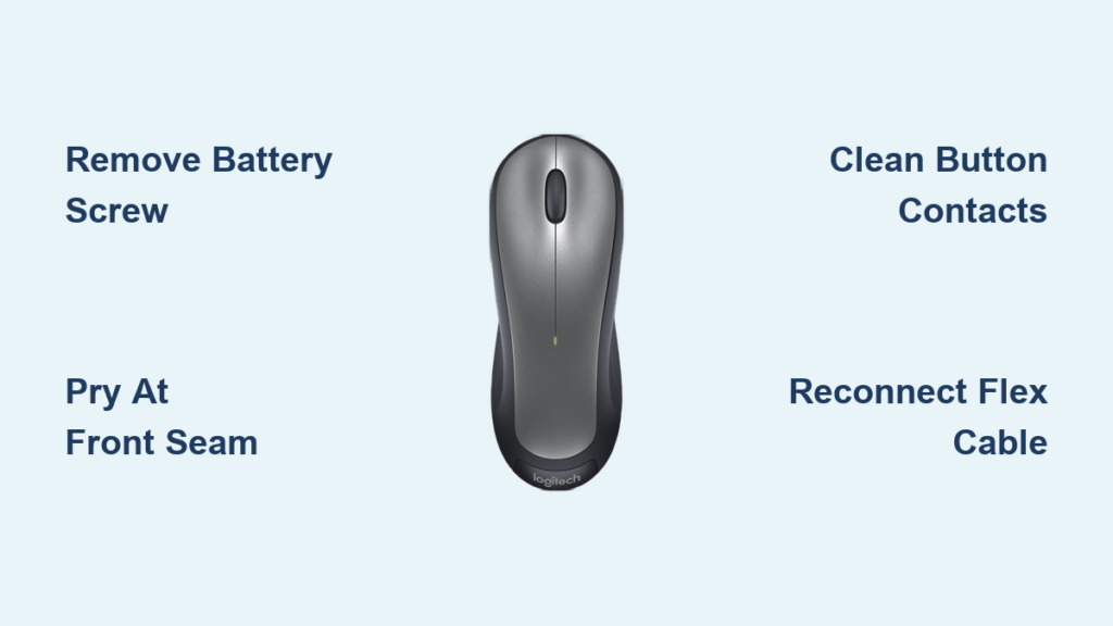 Your Logitech wireless mouse suddenly develops sticky left-click responses or erratic scrolling. You try compressed air around the buttons, but