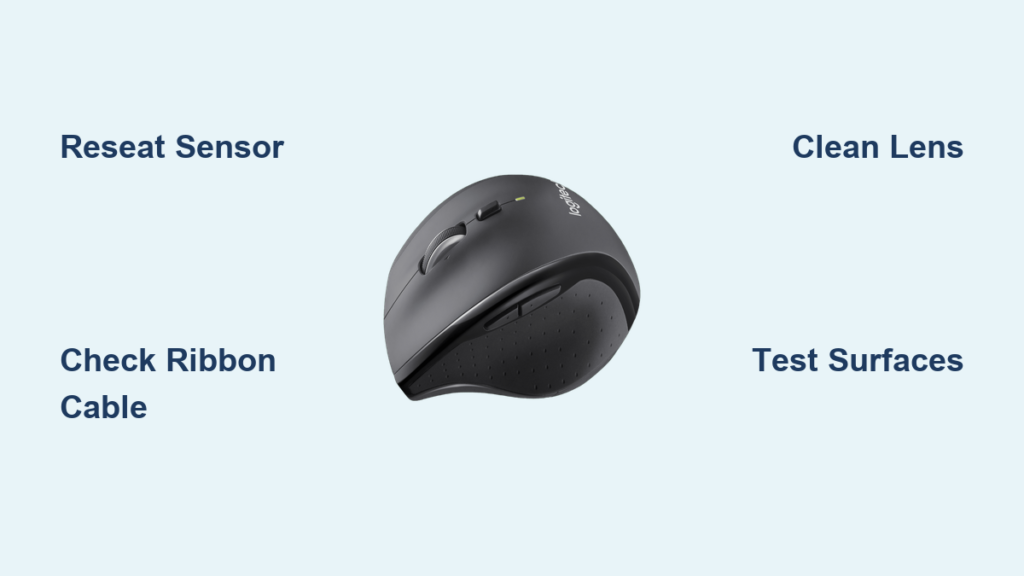 Your Logitech M705 wireless mouse suddenly stops moving on screen, but every click, scroll, and thumb button functions perfectly. That