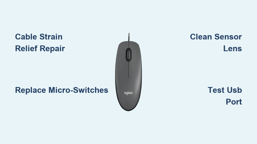 Your trusty Logitech M100 mouse (model M-U0026) suddenly stops responding during an important task. The cursor freezes, clicks go unregistered,