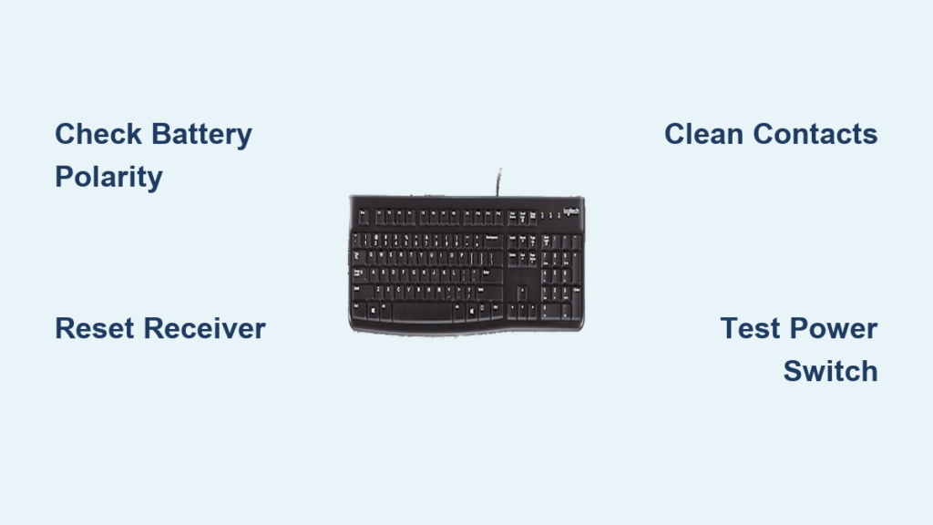 You’ve just installed fresh batteries in your Logitech wireless keyboard, but the keys remain completely unresponsive. No indicator lights, no