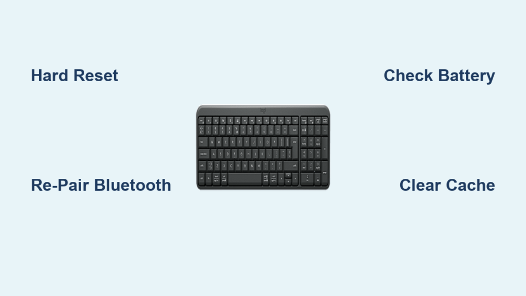 You’re typing an urgent email when suddenly your Logitech keyboard freezes—keys won’t register, backspace deletes nothing, and the spacebar is
