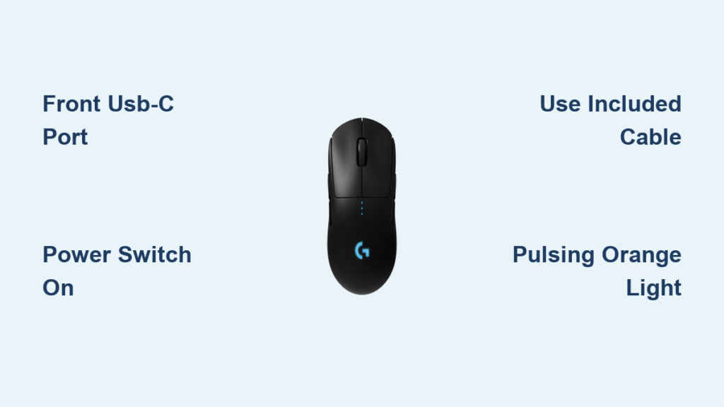 Your intense gaming session just hit a critical moment when the lights on your Logitech G Pro Wireless suddenly dim. That blinking red warning means your mouse is about to die mid-frag. Don’t panic – how to charge Logitech G Pro Wireless mouse is simpler than you think, and you can often keep playing while it powers up. This guide cuts through the confusion with precise steps verified by Logitech’s official specifications, so you’ll never get caught with a dead mouse again. You’ll learn exactly where to plug in, how to interpret those cryptic lights, and why your mouse might refuse to charge even when connected.