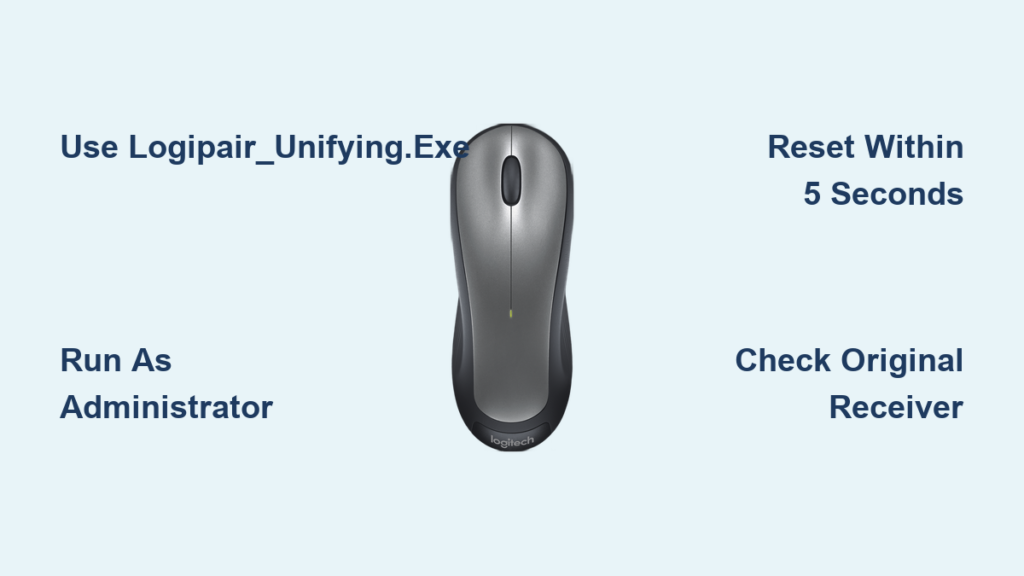 The core problem isn’t a faulty mouse—it’s a pairing conflict. Your M310 ships with a dedicated 2.4GHz receiver that only works with that specific mouse. When you pair it with a Logitech Unifying Receiver (designed for multiple devices), the mouse permanently forgets its original receiver. Standard Logitech Options software can’t reverse this because it only manages Unifying Receiver connections. You’re stuck in a frustrating loop: the mouse works with the Unifying dongle but refuses to recognize its original receiver. This isn’t a coincidence—it’s how Logitech’s wireless protocol prioritizes the last paired receiver, making the reset Logitech M310 mouse process essential for restoring original functionality.
