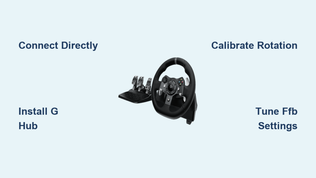 G Hub isn’t optional software—it’s the translation layer converting game physics into tangible wheel forces. Without it, your G920 operates in limited Xbox mode with no FFB customization.