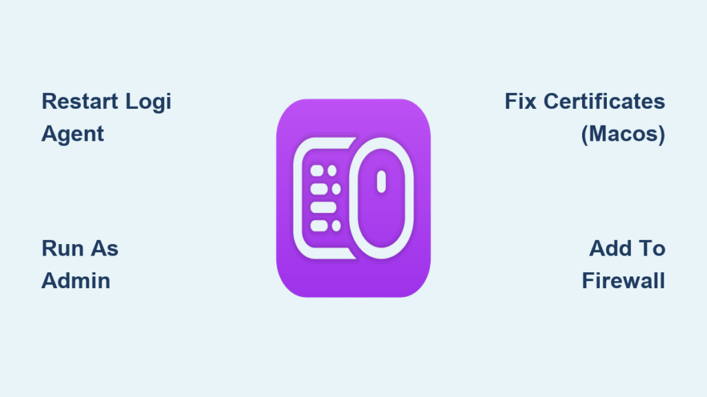 Logitech Options+ relies on a background process called Logi Agent to communicate with Logitech’s servers. When this connection fails, you lose the ability to save settings, update firmware, or customize your devices. Common triggers include security software interference, network configuration issues, corrupted installation files, and certificate problems—especially on macOS. The most frequent cause is the Logi Agent process freezing or crashing, which happens after system updates or when other applications conflict with Logitech’s background services.