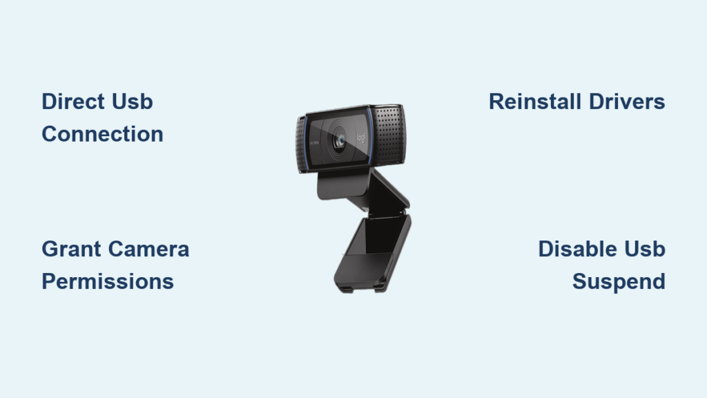 Your Logitech C920 webcam not detected issue often stems from insufficient power delivery. Front-panel USB ports and unpowered hubs frequently can’t supply the 500mA required by the C920 or the 900mA needed by the C922. Here’s your action plan: