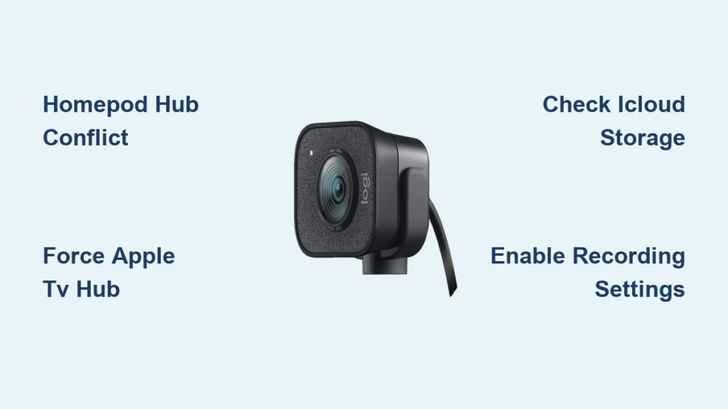The root cause of your Logitech camera not recording lies in which Apple device acts as your Home Hub. HomeKit Secure Video processing only works reliably when an Apple TV—not a HomePod—manages the recordings. Recent firmware updates introduced a critical bug where HomePods as primary hubs silently break HSV pipelines.