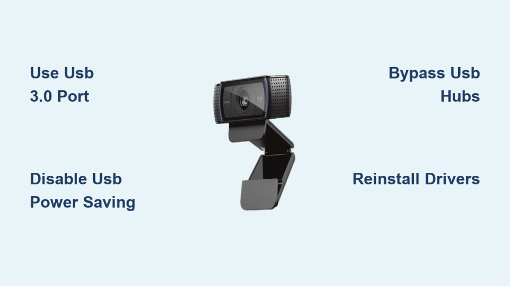Logitech’s C920 requires massive bandwidth—about 60MB/s—to deliver 1080p video. When your USB port can’t sustain this data flow, you get a complete black screen. This happens most often because: