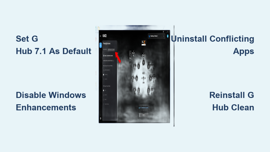 This widespread issue typically strikes after Windows updates, driver changes, or when competing audio software hijacks control. Crucially, G Hub’s virtual surround relies on a specific audio pathway – when Windows defaults back to your physical headset instead of the “G HUB 7.1 Surround” virtual device, stereo sound takes over. We’ll diagnose whether your problem stems from third-party app clashes, corrupted profiles, or simple setting missteps. Follow these proven steps in order to systematically eliminate each failure point and reclaim your immersive audio experience.
