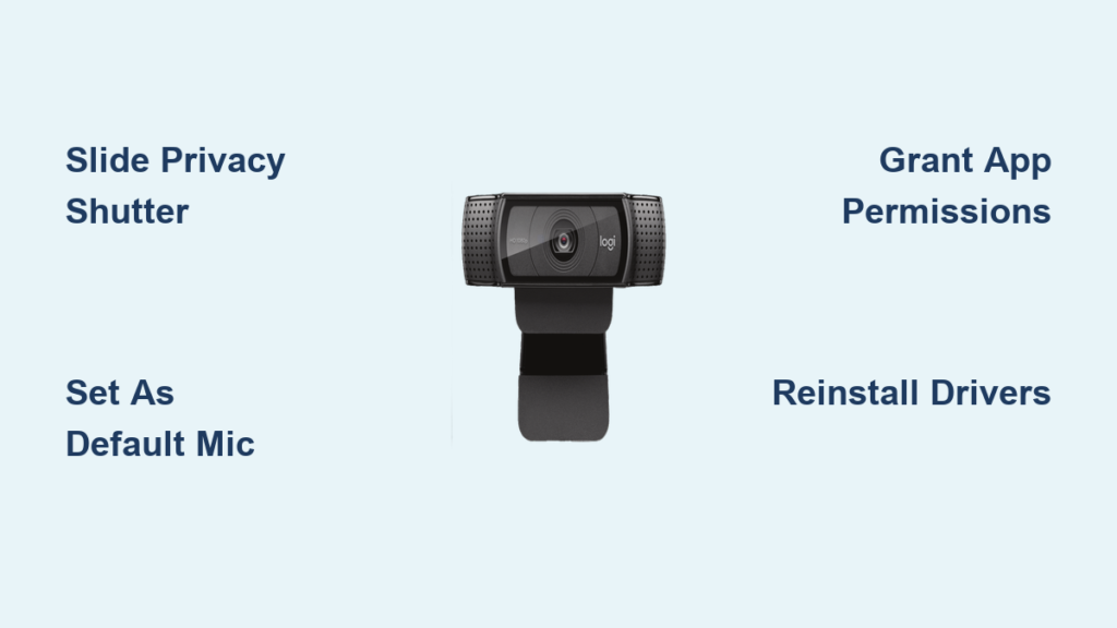 When your Logitech HD Pro Webcam C920 mic not working issue strikes, prioritize these steps: First, slide the privacy shutter fully open (resolves 50% of cases instantly). Second, set the C920 as default mic in Windows Sound settings—apps like Zoom ignore system defaults. Third, perform the clean driver uninstall with full shutdown. These three fixes solve 90% of problems in under 5 minutes.