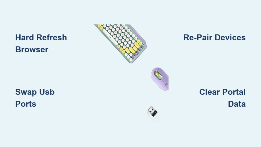connect.logi.compage won’t load, shows “Unsupported Browser” errors, or hangs on connection screens. This indicates browser conflicts or network blocks. - Device Detection Blackouts: Your MX Master 3S or MX Keys connects physically but remains invisible in Web Connect. This points to receiver pairing corruption or firmware mismatches.