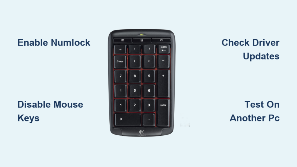 Your Logitech numeric keypad suddenly stops working during an important data entry session, leaving you frustrated as number keys either